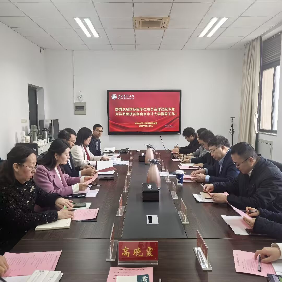 随后,江振春院长围绕南京审计大学区域国别学硕士点申报工作展开汇报。学校立足审计特色优势,前瞻布局该学科,整合多学院资源组建跨学科团队。近年来,团队在区域经济审计、跨文化审计沟通等方向成果突出,为硕士点申报筑牢根基。