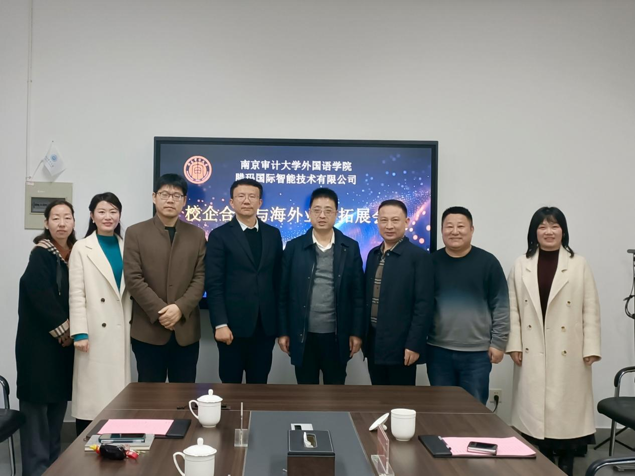 12月18日上午,南京审计大学外国语学院及文学院与腊玛国际智能技术有限公司校企合作与海外业务拓展会议在文心楼举行。会议以“搭建合作桥梁、共育国际化人才”为核心,标志着双方在翻译硕士培养、海外实习基地建设及区域国别研究等方面合作的全面启动。校党委常委、副校长李乾文,腊玛公司董事长蒋兆玉、销售总监孙震及外国语学院、文学院领导班子成员等出席。