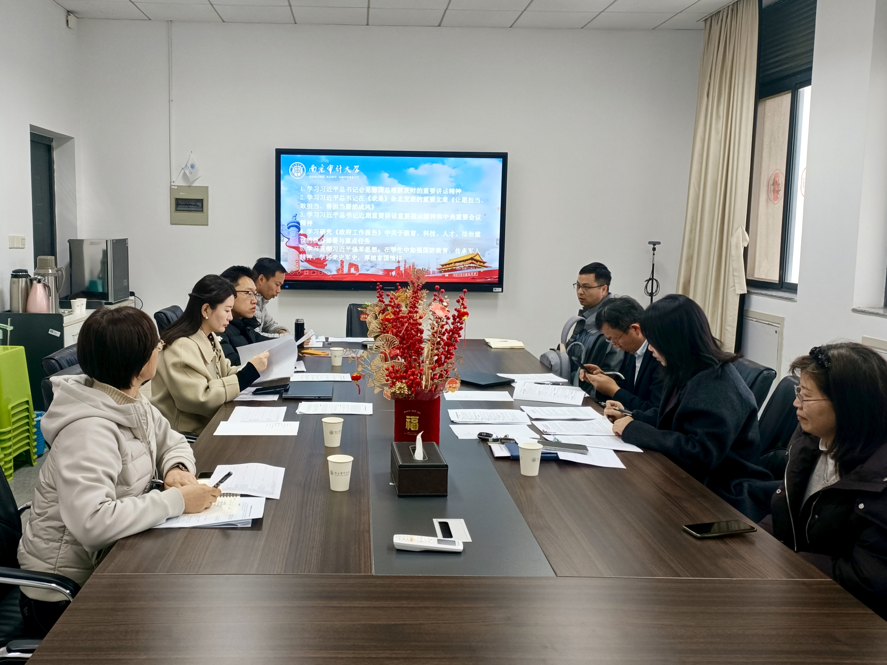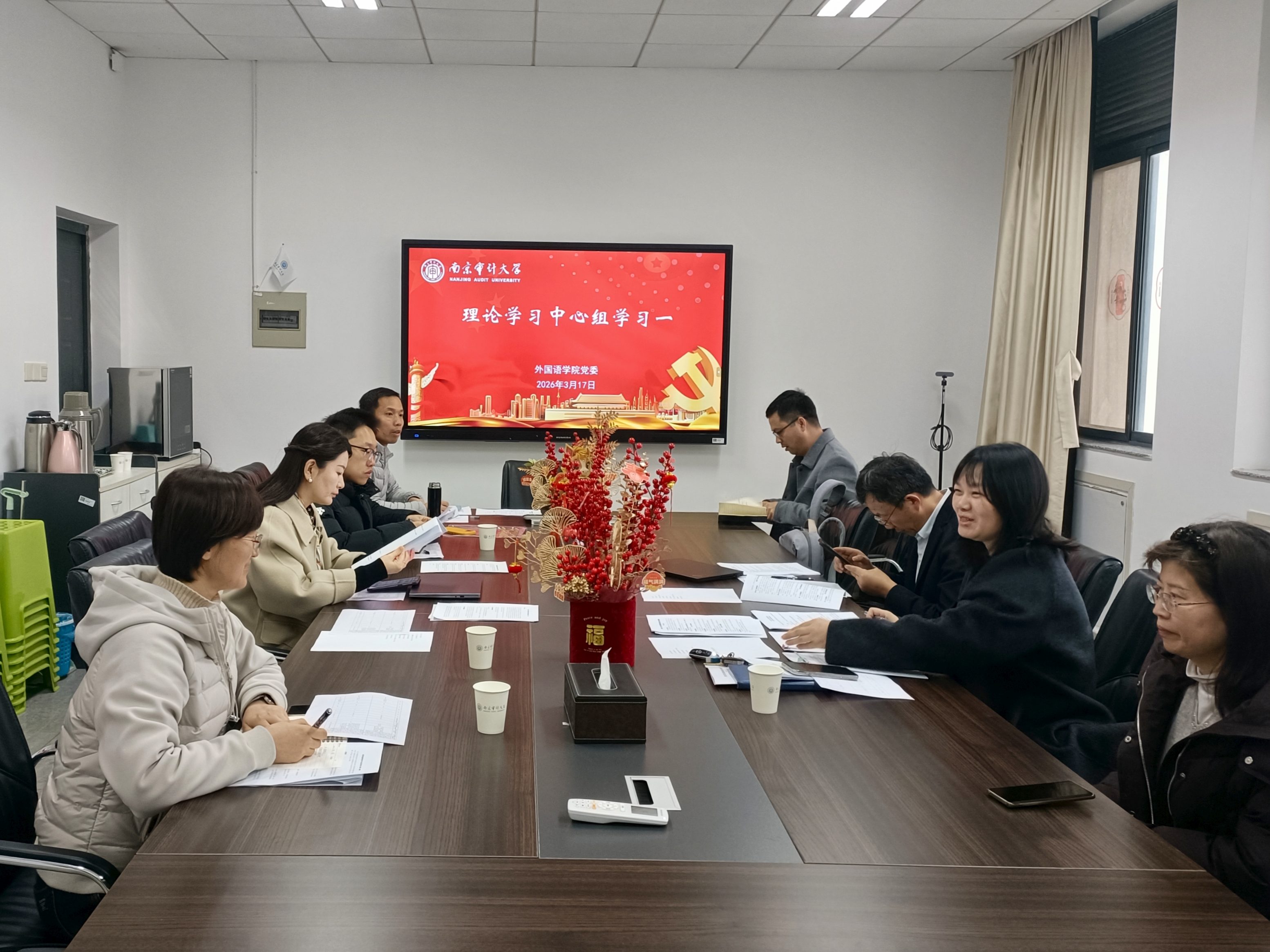 理论学习中心组成员围绕学习主题交流心得,一致表示将以此次学习为契机,压实责任、抓实落实,把理论成果转化为履职实效,推动学院党建与事业发展深度融合,为学校高水平审计特色大学建设贡献外语力量。