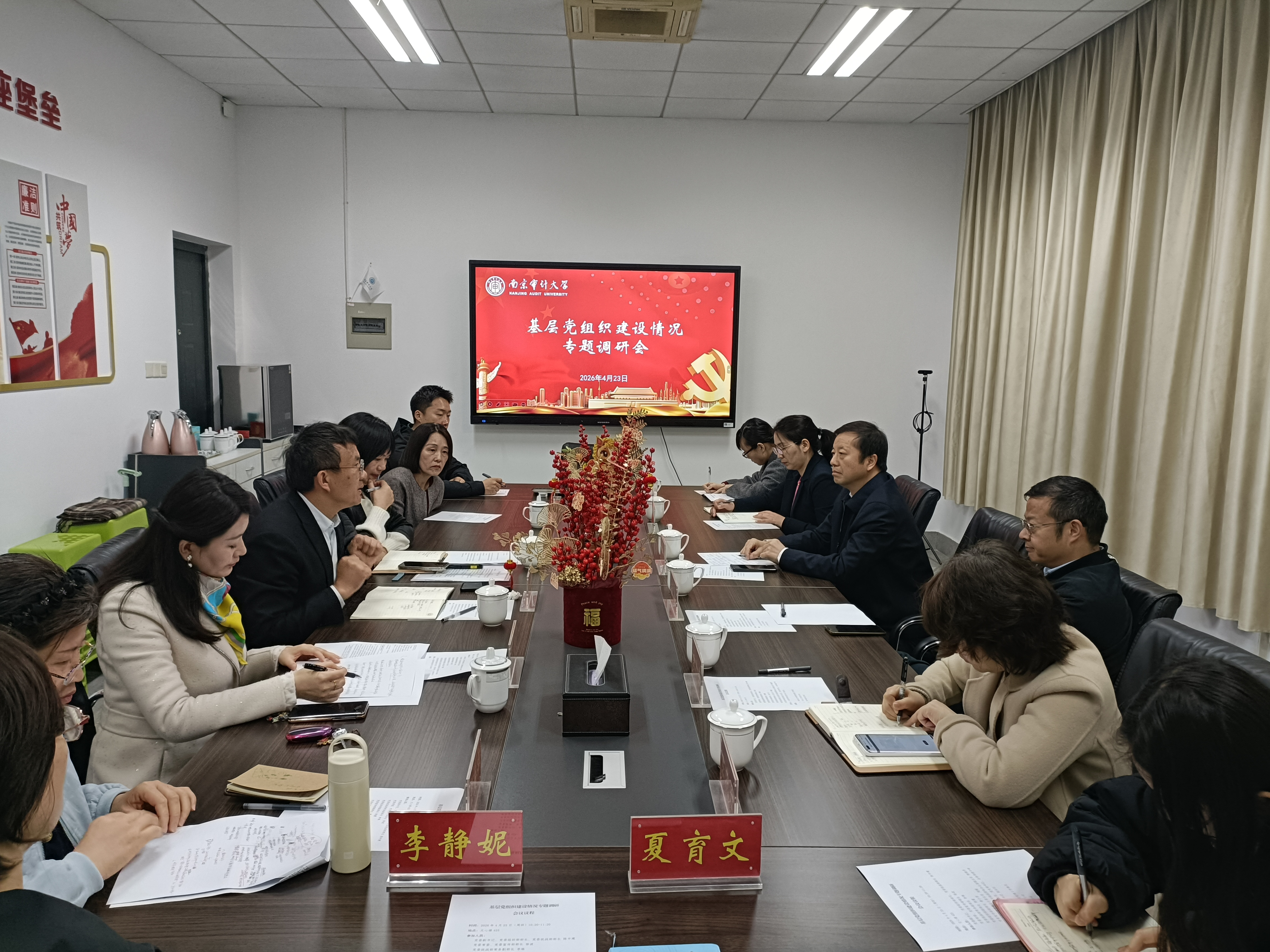 院长江振春回顾学院发展历程,汇报办学成果与涉外审计专业改造成效,聚焦党建与业务融合,分析当前办学困境与发展机遇,坚持以党建引领区域国别研究各项工作,促进高质量成果产出。副院长张薇汇报区域国别学硕申报与国别区域研究中心建设推进情况。各党支部书记围绕支部建设、党员作用发挥、组织生活规范等作交流发言,畅谈基层党建实践体会与改进思路。